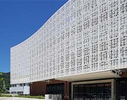 アーキスキンパネルは、標準仕様としてアルミニウム材を採用しており、軽量性・耐食性・加工性に優れ、外装材として高い汎用性を有します。