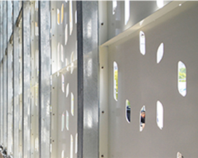 アーキスキンパネルは、標準仕様としてアルミニウム材を採用しており、軽量性・耐食性・加工性に優れ、外装材として高い汎用性を有します。