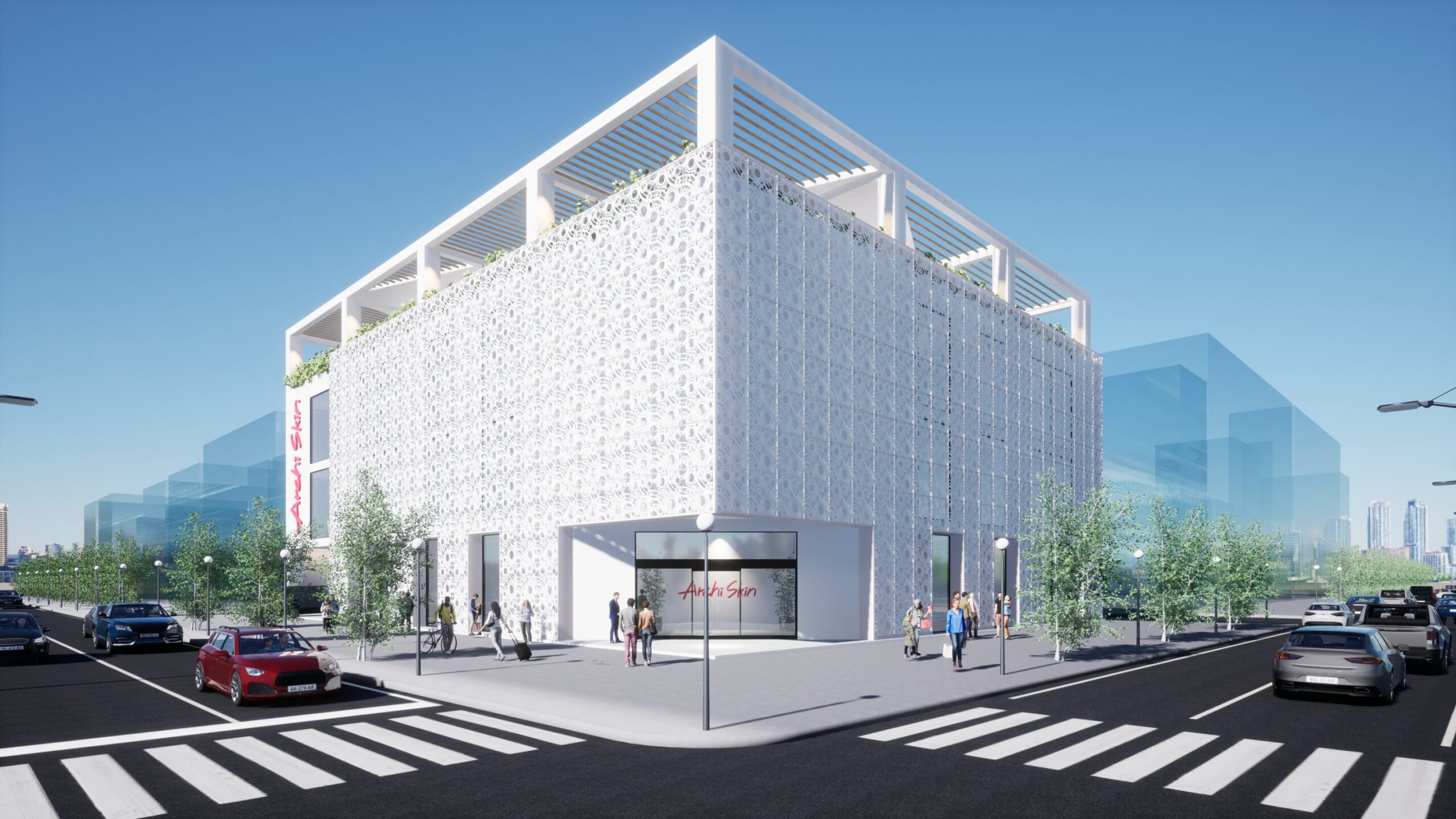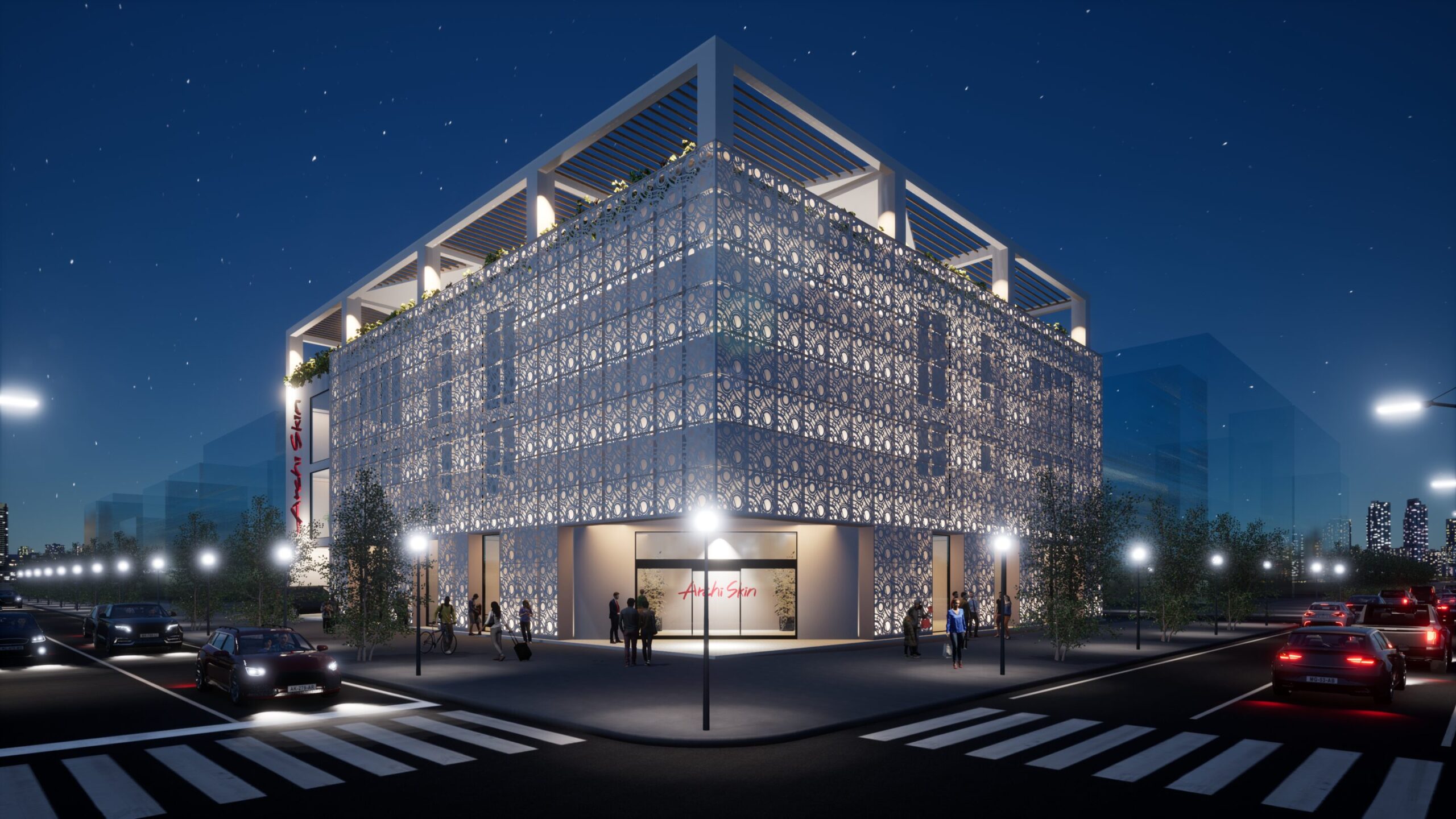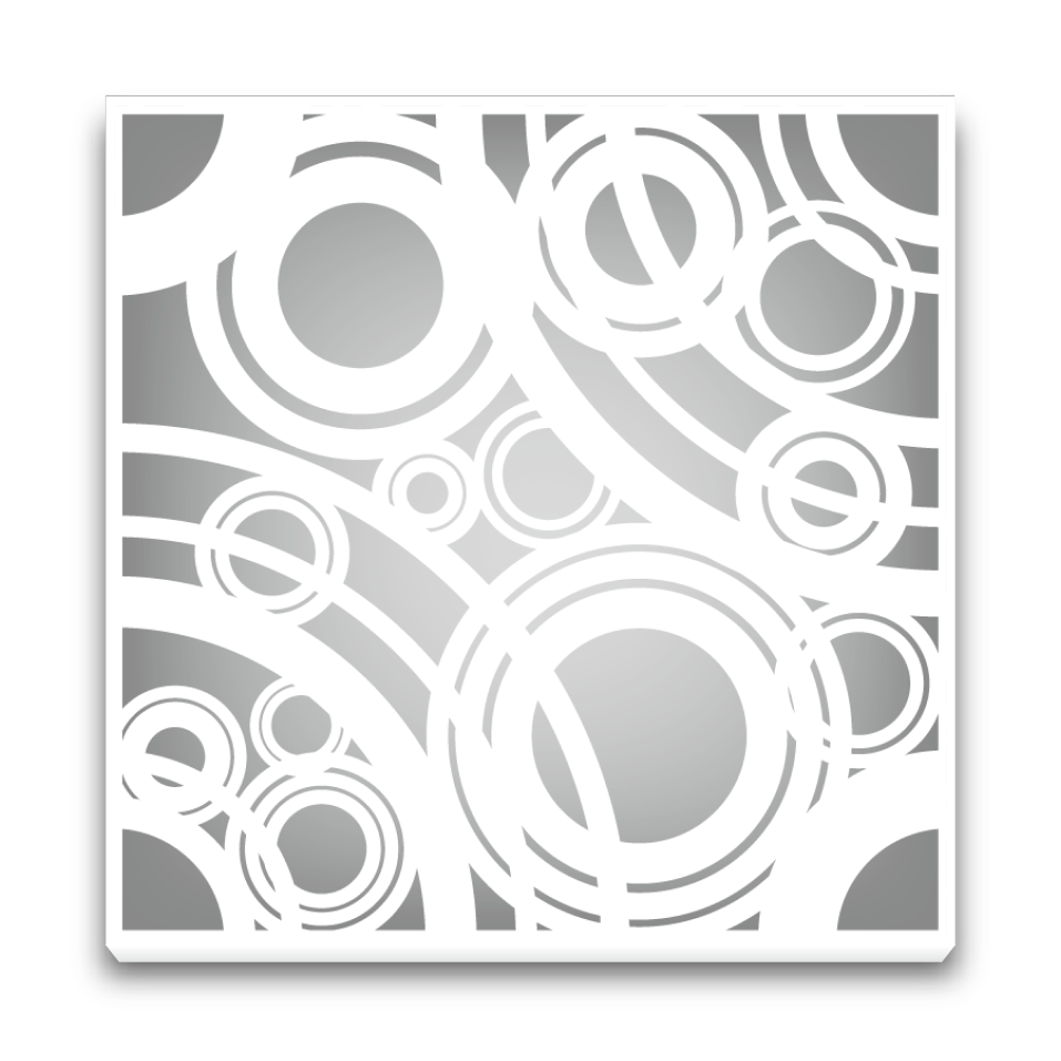 大小様々な輪を用いて、水面に広がる波紋を表現したデザインです。同じパネルでも、回転して組み合わせることで、円や波など形を変えていきます。