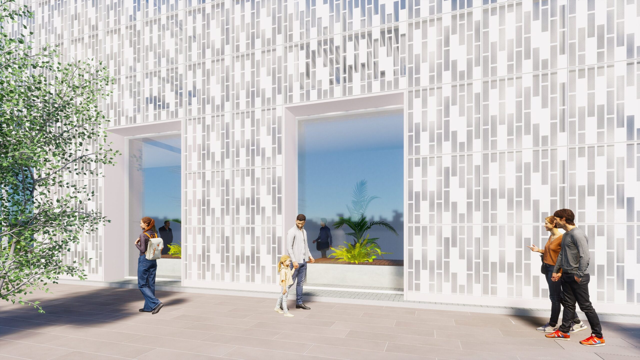 タイルを縦に馬張りしたデザイン。 ランダムでリズミカルな壁面を演出します。